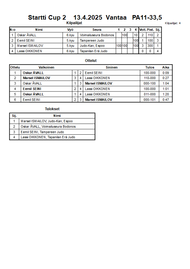 Startti Cup 2 13.4.2025 Vantaa