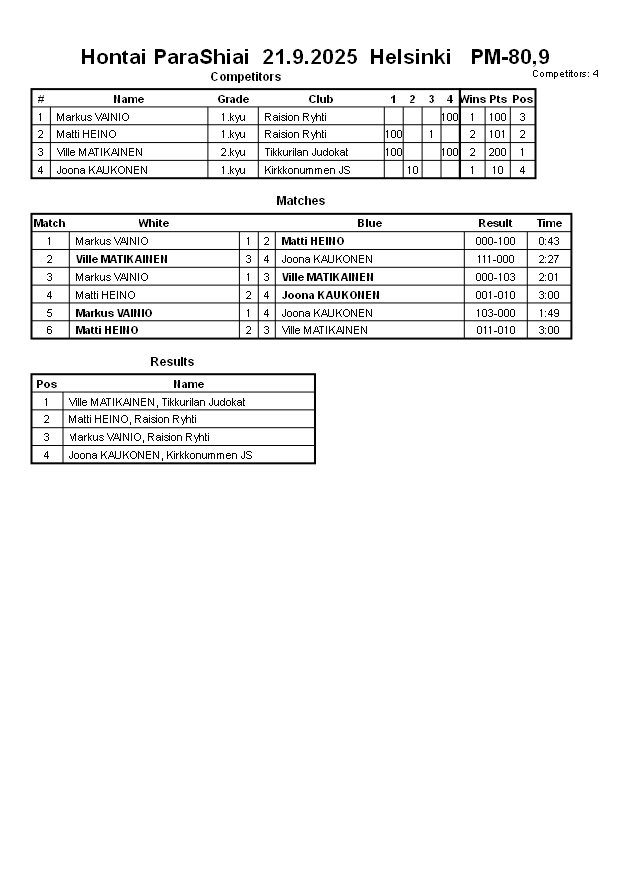 Hontai ParaShiai 21.9.2025 Helsinki