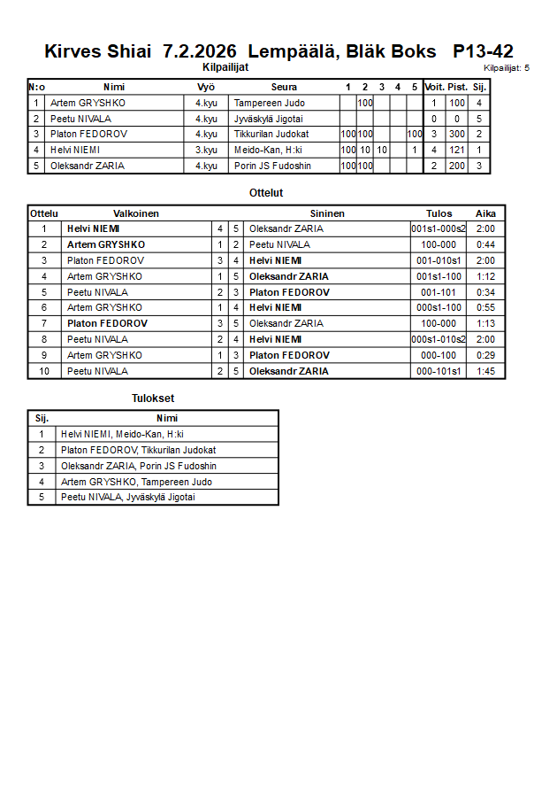 Kirves Shiai 7.2.2026 Lempäälä, Bläk Boks